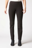 Flattering and effortlessly comfortable, these pull-on pants feature built-in pockets, a comfy waistband, and front seams that elongate the legs. Made from a soft rayon-nylon-spandex blend with a slight boot cut for a sleek finish.