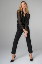 A touch of understated glamour. This black straight-leg pair features fine crystal accents that catch the light with every step. The soft shimmer brings depth to its clean, tailored shape, making the denim feel both easy and indulgent. Ideal for nights out or adding polish to your everyday look.