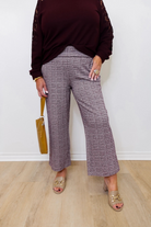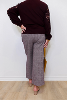 The Mabel Crop combines tailored polish with ease, featuring a modern wide-leg silhouette in our wine multi smudge check. Designed with a pull-on elastic waistband, this cropped style offers all-day comfort without sacrificing style. A versatile piece that pairs seamlessly with blouses, knits, or blazers.