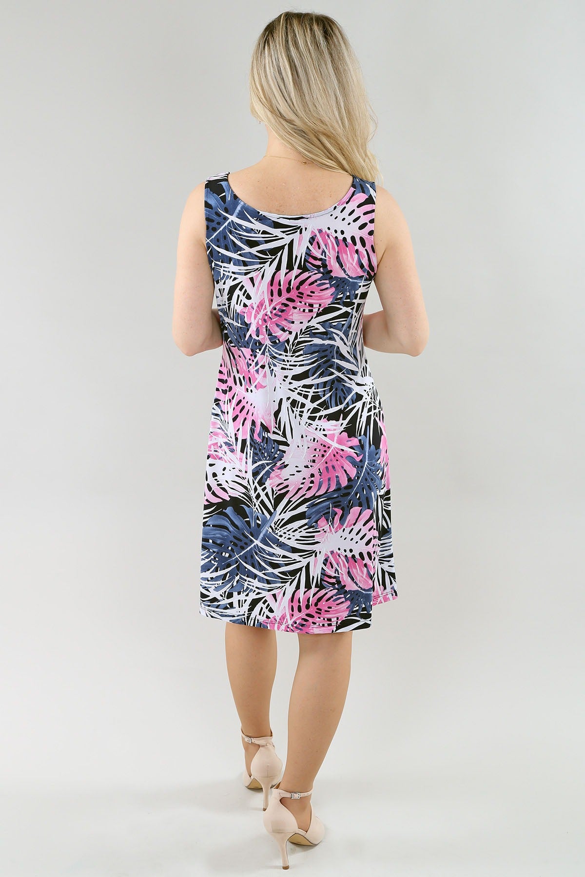 A breezy printed sundress with a scoop neckline and sleeveless cut, ideal for warm-weather days. The Michael Tyler Sundress features a flattering A-line silhouette and vibrant tropical floral print that hits around mid-thigh. Lightweight and easy to wear, it’s perfect for casual weekends and vacation packing.