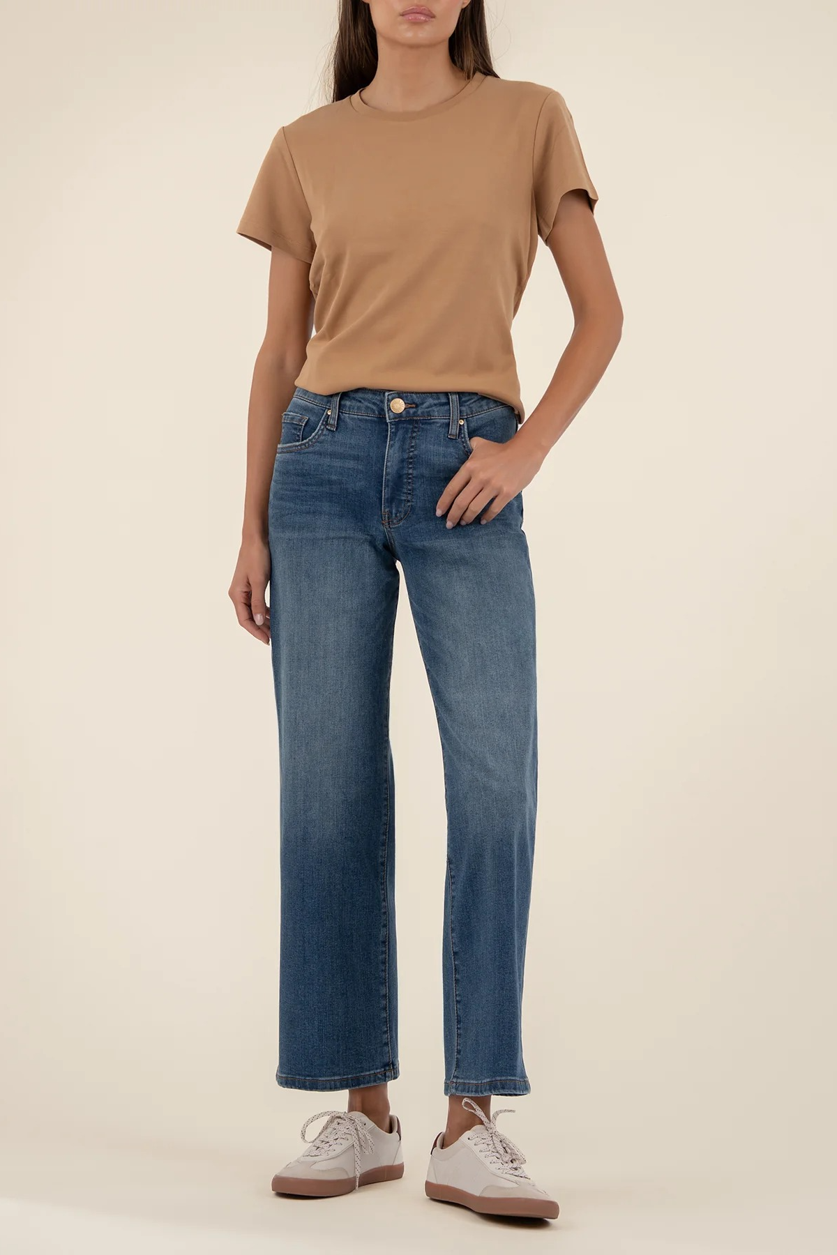 Highlight your shape in these high-rise wide-leg jeans, crafted in a versatile medium wash. Featuring Fab Ab technology for a smooth, flattering fit and made with ultra-stretch fabric, they deliver effortless comfort and support all day long.