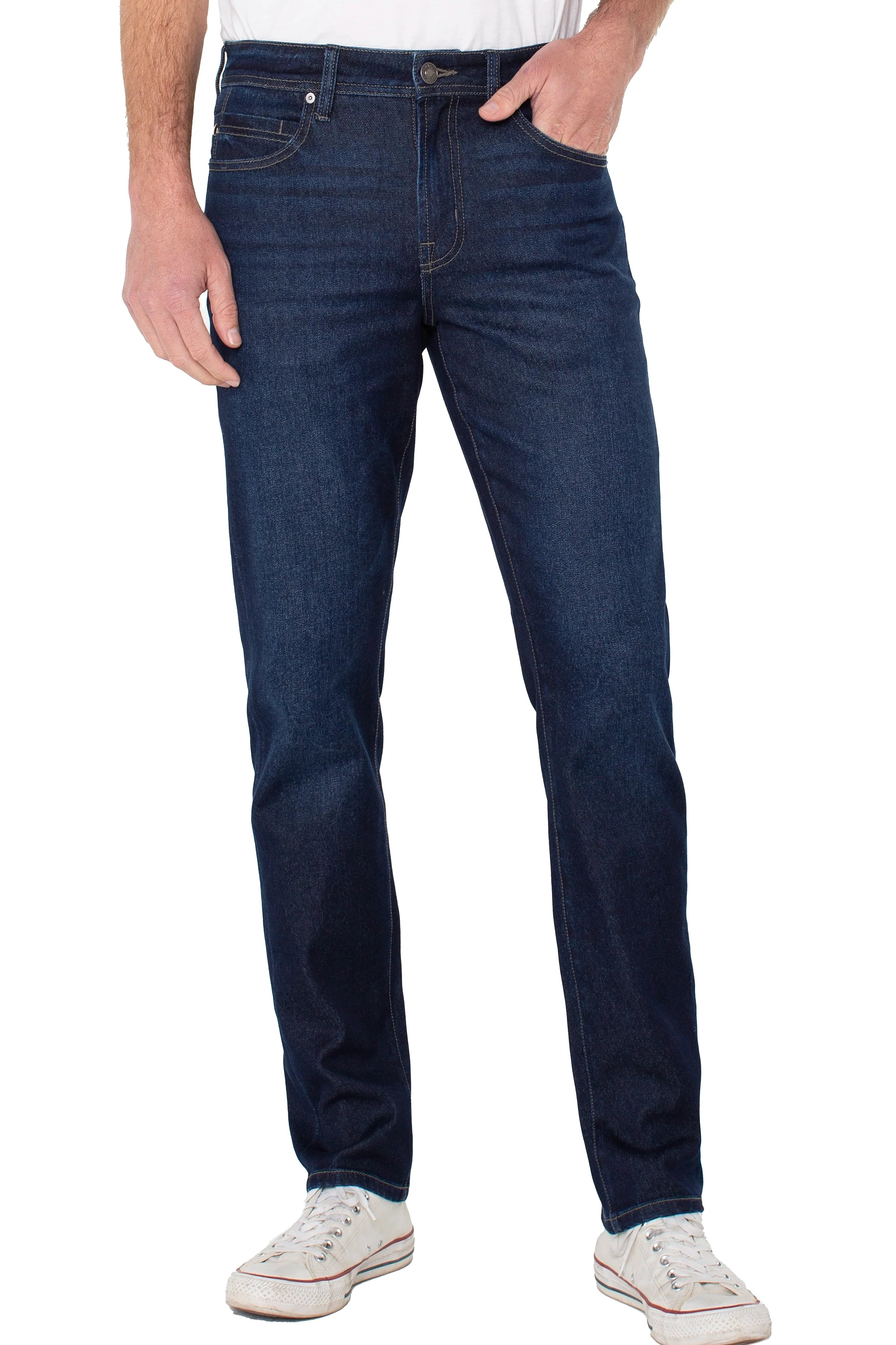 Made from soft Lyocell stretch denim, this modern straight-leg jean combines lasting comfort with an authentic, lived-in feel. The Gallatin wash gives it a clean, versatile look that transitions seamlessly from day to night, complete with classic five-pocket styling and refined details designed for everyday wear.