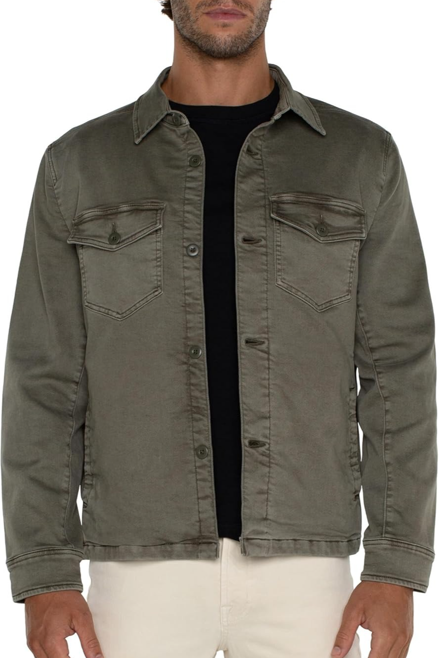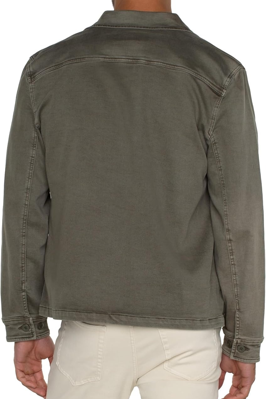 Complete your look with the Liverpool Los Angeles Knit Denim Overshirt. Made from premium knit-colored denim, it features a classic collared neckline, long sleeves with buttoned cuffs, a front button closure, and a clean straight hem for a polished finish.