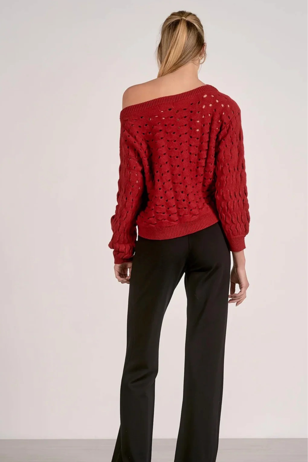 A confident twist on open knit texture. The Adrienne Sweater showcases a wide neckline and relaxed oversized fit that falls effortlessly over the body. Detailed with intricate stitching for airy dimension and gentle structure, it’s a statement staple designed to bring something special to your everyday look.