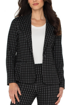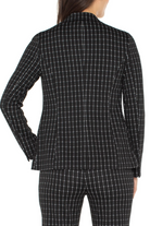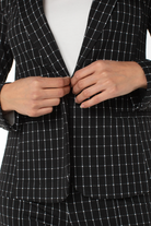 A modern, tailored blazer featuring a classic black-and-white windowpane check. Its fitted cut and single-button closure offer a sharp, streamlined silhouette, while front pockets provide a touch of practical sophistication. A versatile, timeless piece that seamlessly transitions from day to night.