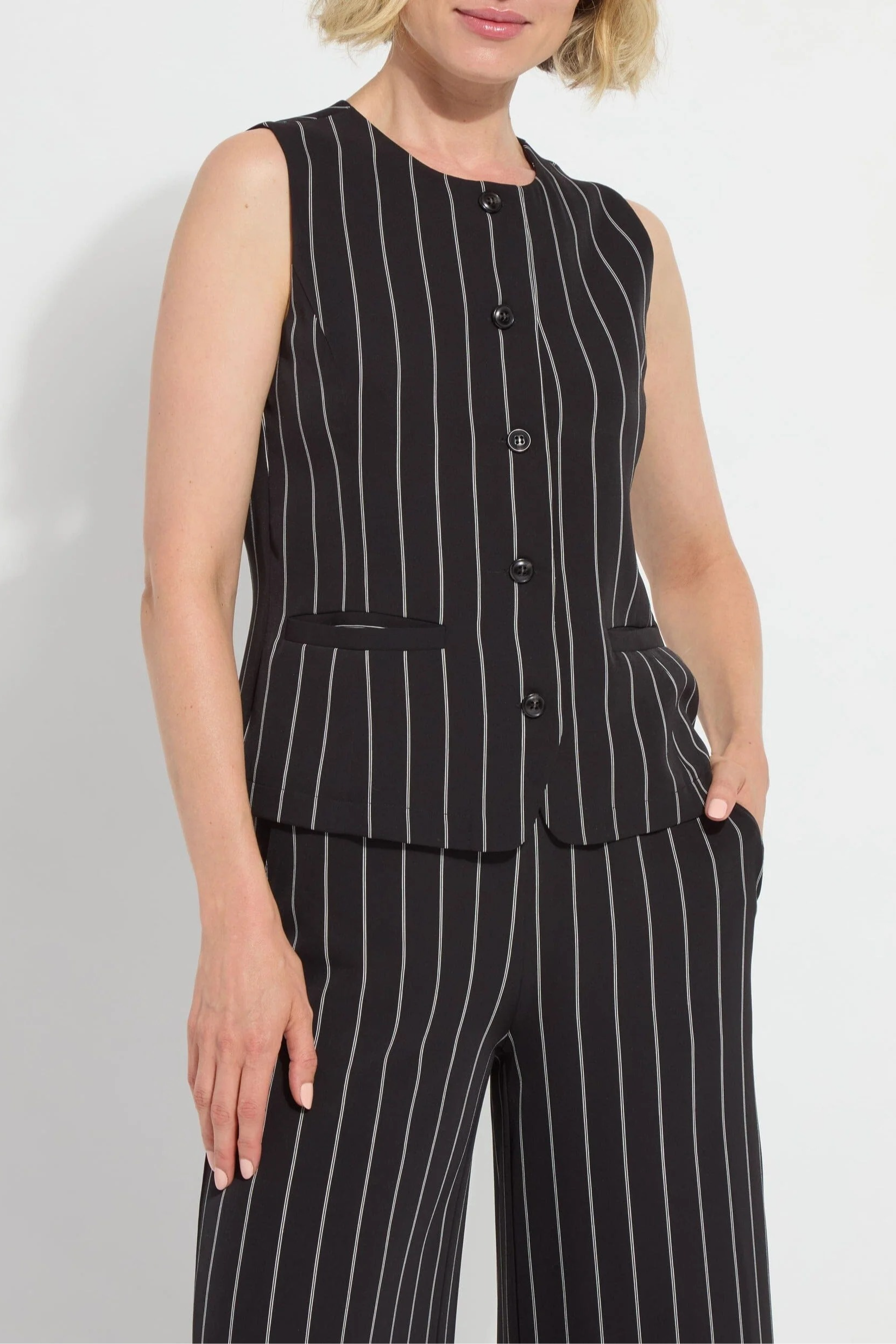 The Ava Cropped Palazzo combines a wide, cropped leg with 2-way stretch for effortless movement. It features a 25-inch inseam, functional side pockets with mesh lining, a flat front, and an elasticated back waist with belt loops. Crafted from wrinkle-resistant Stretch Woven fabric, it drapes beautifully and is finished with a double-self hem. Pair it with the Perfect Box-Cut Tee and matching Ava Tailored Vest for a polished look. Machine washable for easy care.