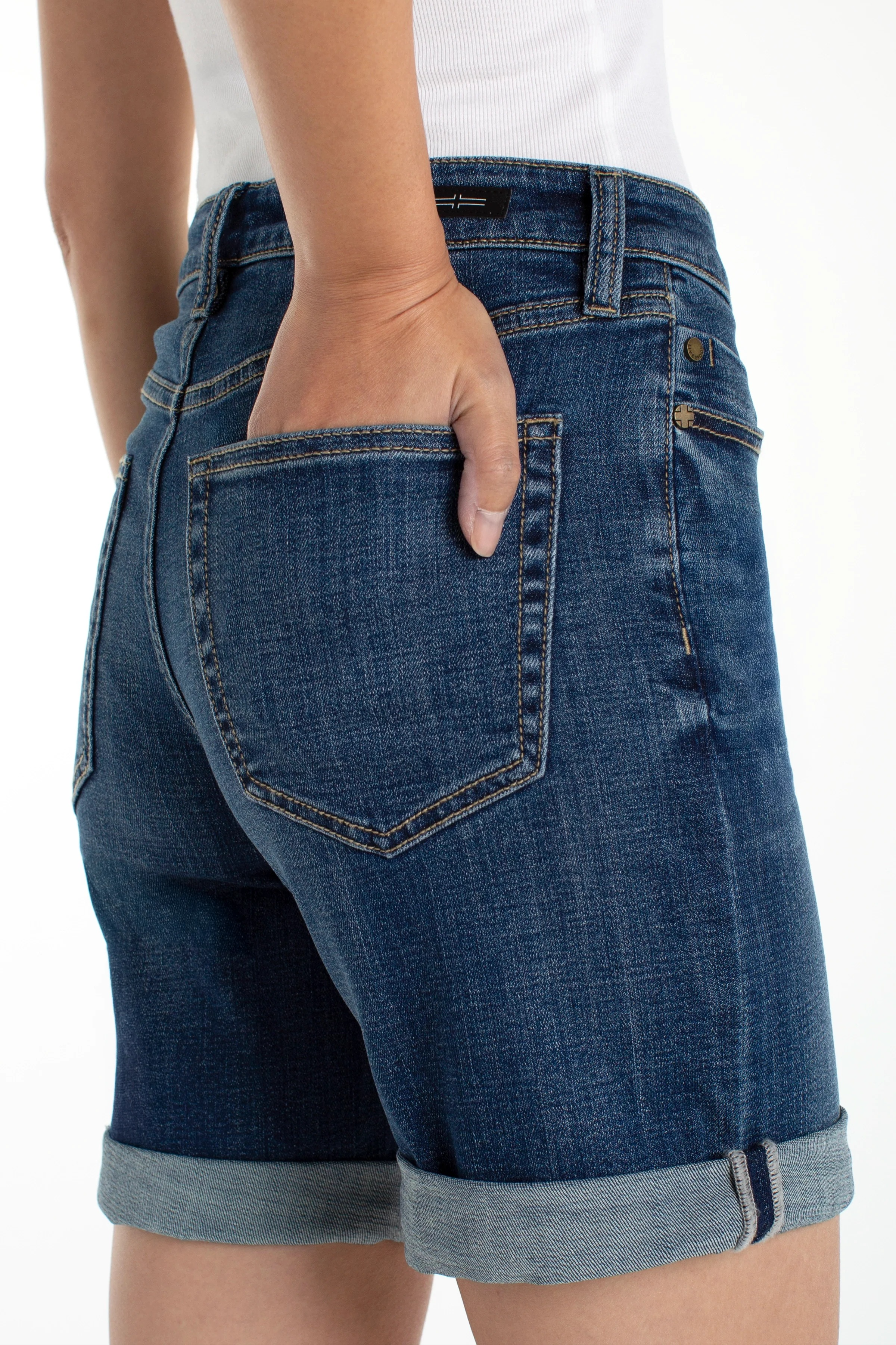 The Marley Girlfriend Shorts 10/7" are a denim short with a relaxed, girlfriend fit and a clean dark indigo wash. These shorts feature classic five-pocket styling and a mid-to-high rise that sits comfortably at the waist. Liverpool Shop crafted them from stretch denim for easy movement and everyday wear.