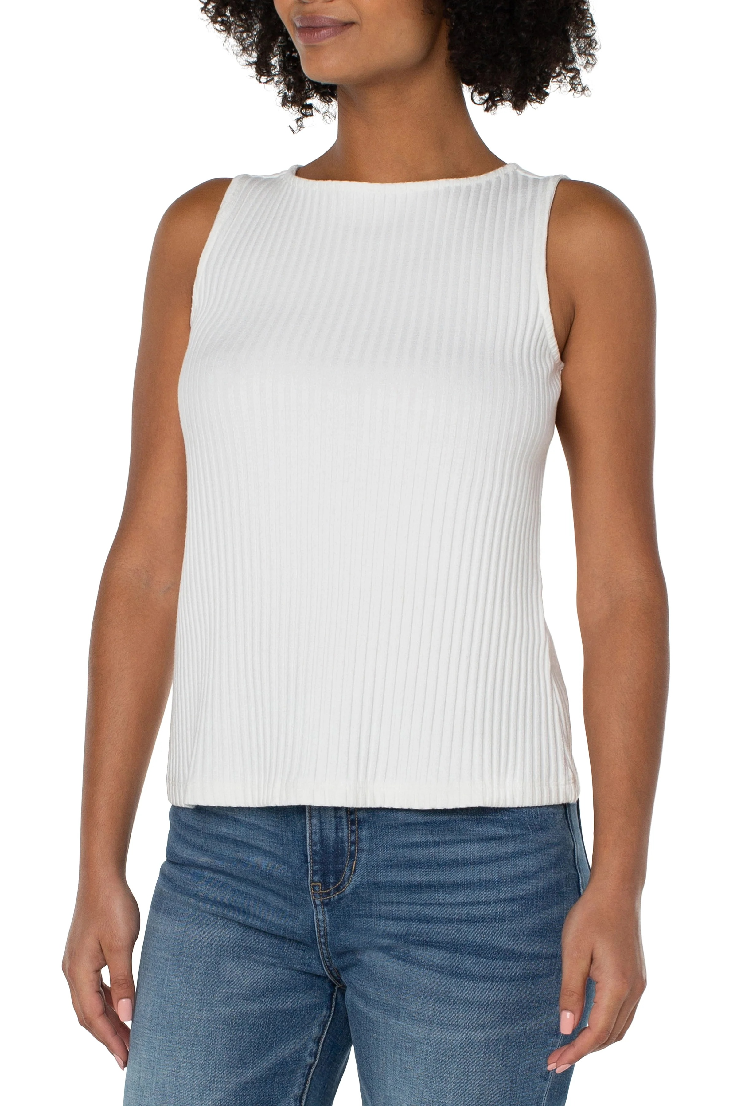 A polished wardrobe staple built for versatility, this sleeveless rib knit features a flattering boat neckline and soft, stretch-infused fabric for a smooth, body-skimming fit. Wear it on its own for a clean, effortless look or layer it under jackets and cardigans. Available in multiple colors to complement every style and season.