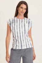 Two subtle pleats at the shoulders elevate this classic mock-neck silhouette. Crafted in breezy slub jersey, it delivers effortless comfort and style in one standout piece.
