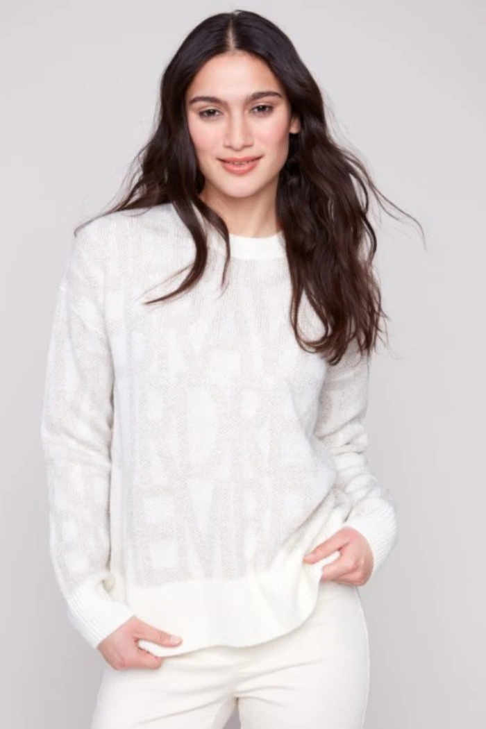 Step into effortless sophistication with this soft jacquard crew neck sweater from Charlie B. The relaxed fit and ribbed trim at the neck, cuffs, and hem add cozy structure, making it perfect for layering or wearing on its own. Pair it with tailored pants or your favorite jeans for an elevated everyday look that feels as empowering as it is comfortable.