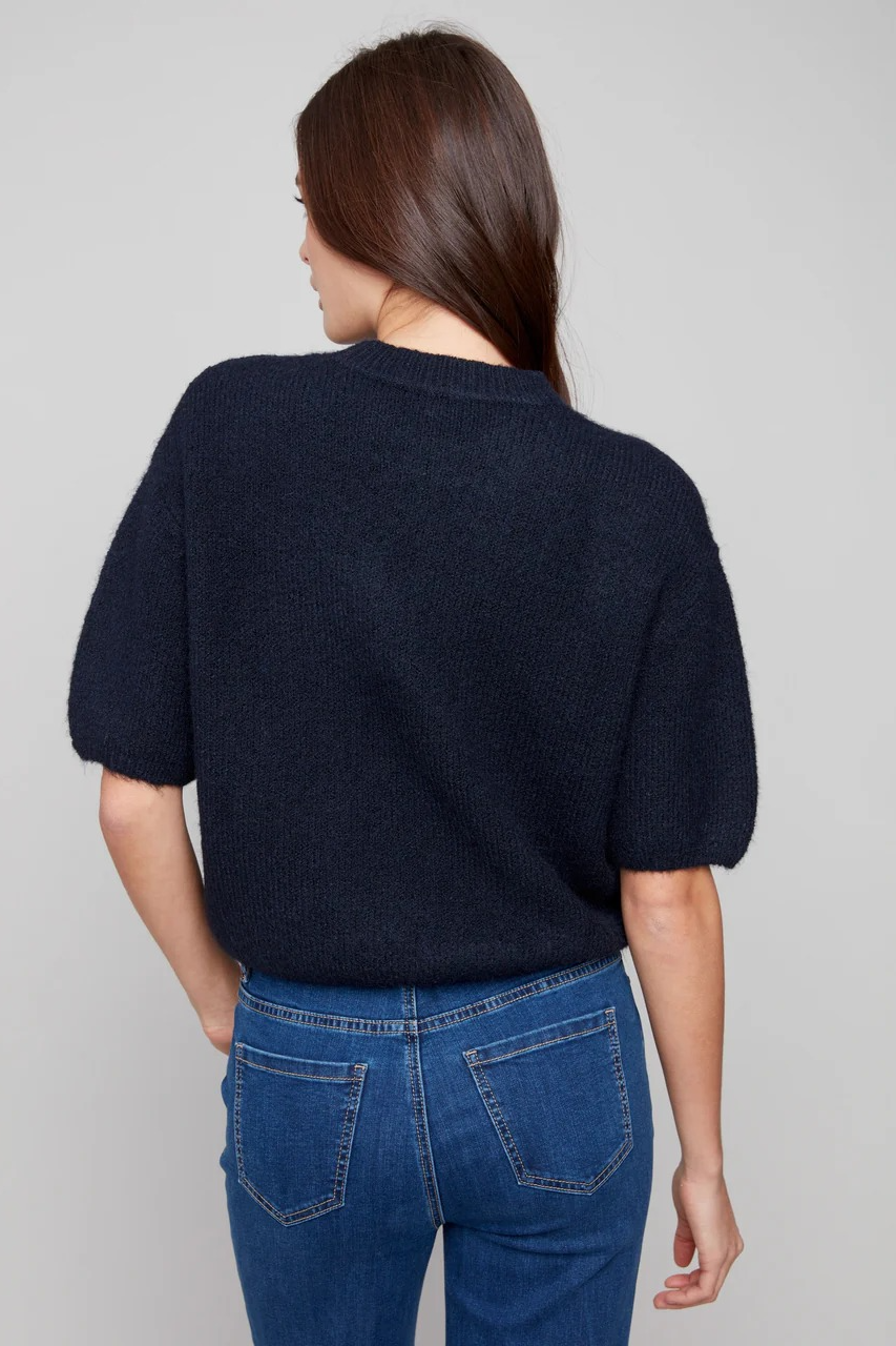 Wrap yourself in the soft elegance of this balloon sleeve knit sweater. Crafted from a plush, textured knit in a rich moonlight blue hue, it adds a touch of sophistication to any look. The relaxed fit and graceful sleeves make it perfect for layering or wearing on its own, offering both comfort and timeless style for the fall season.