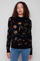 Embrace cozy elegance with this black embroidered mock neck sweater. The soft knit design combines comfort with charm, featuring delicate floral embroidery across the front and sleeves for a touch of whimsy. Finished with ribbed edges at the neck, hem, and cuffs, it’s the perfect piece to brighten cooler days and elevate your fall wardrobe.