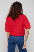 Embrace effortless elegance with this balloon sleeve knit sweater. Crafted from a plush, soft-textured knit in a rich crimson red, it adds a touch of warmth and sophistication to any look. The relaxed fit and stylish balloon sleeves make it perfect for layering or wearing on its own, creating a cozy yet polished outfit for the fall season.