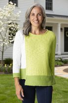 A vibrant blend of shapes and colors in soft 100% cotton slub yarn. Rolled edges at the neckline, sleeves, and hem add a casual touch, while the relaxed fit ensures all-day comfort.