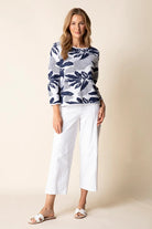 A refined sunflower relief pattern adds a subtle hi-lo texture to this cotton-viscose knit. Finished with gently rolled edges at the collar, sleeves, and hem for a polished touch.