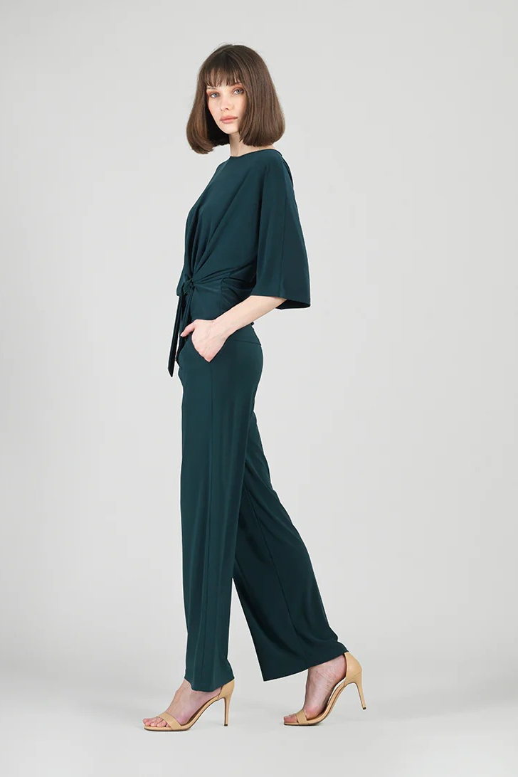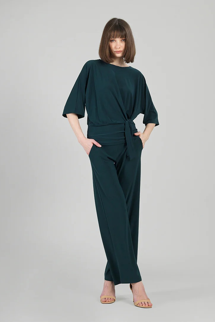 Our Side Tie Top keeps you looking chic from every angle. It features a high round neckline, elbow length sleeves, and a flattering side tie detail. The waist hugging hem creates an elegant blouson silhouette that feels refined and easy to wear. This top brings a stylish touch to both casual days and dressed up evenings.