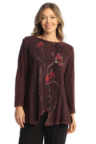 Artful and effortless, this long sleeve top features a painterly floral design on a rich burgundy backdrop. Crafted from soft, breathable fabric with an easy, flowy fit and asymmetrical hem - perfect for adding a touch of elegance to everyday wear.