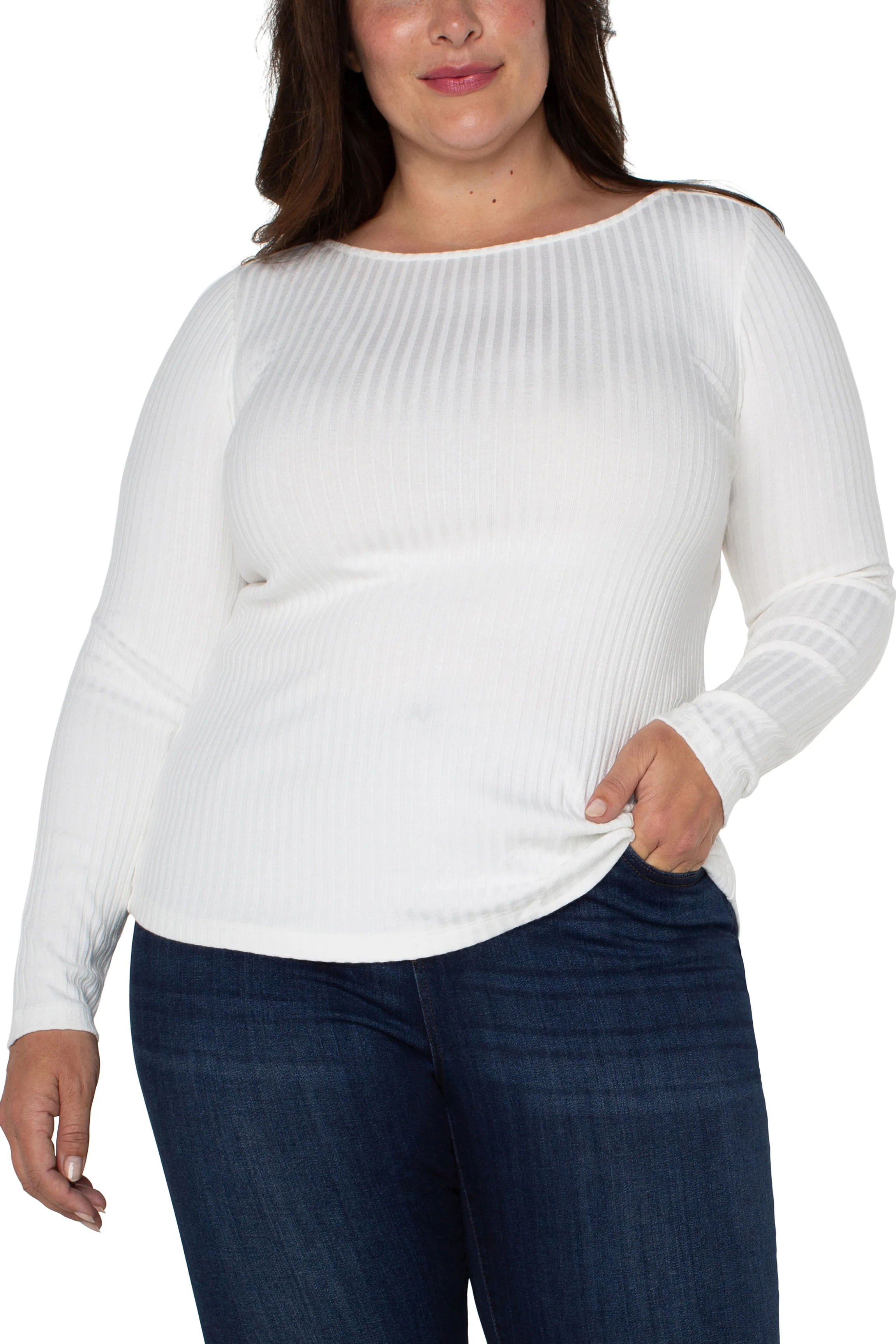 A timeless essential, this long-sleeve knit top features a flattering boat neckline and wide rib texture for effortless comfort and style. Easy to wear on its own or layered, it’s a versatile piece you’ll reach for again and again.