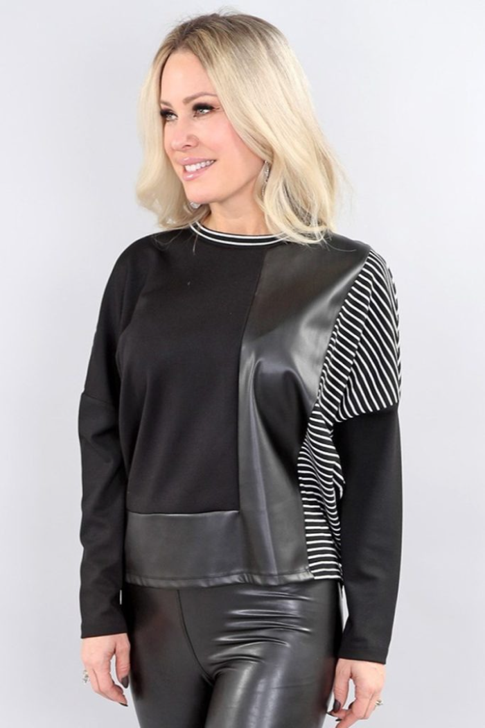 The LS Top with Leather-Stripe Back in Black Stripes is a standout addition to any boutique collection. Made from premium Linen Stripe, it offers a blend of comfort, durability, and sophisticated style your customers are sure to appreciate.