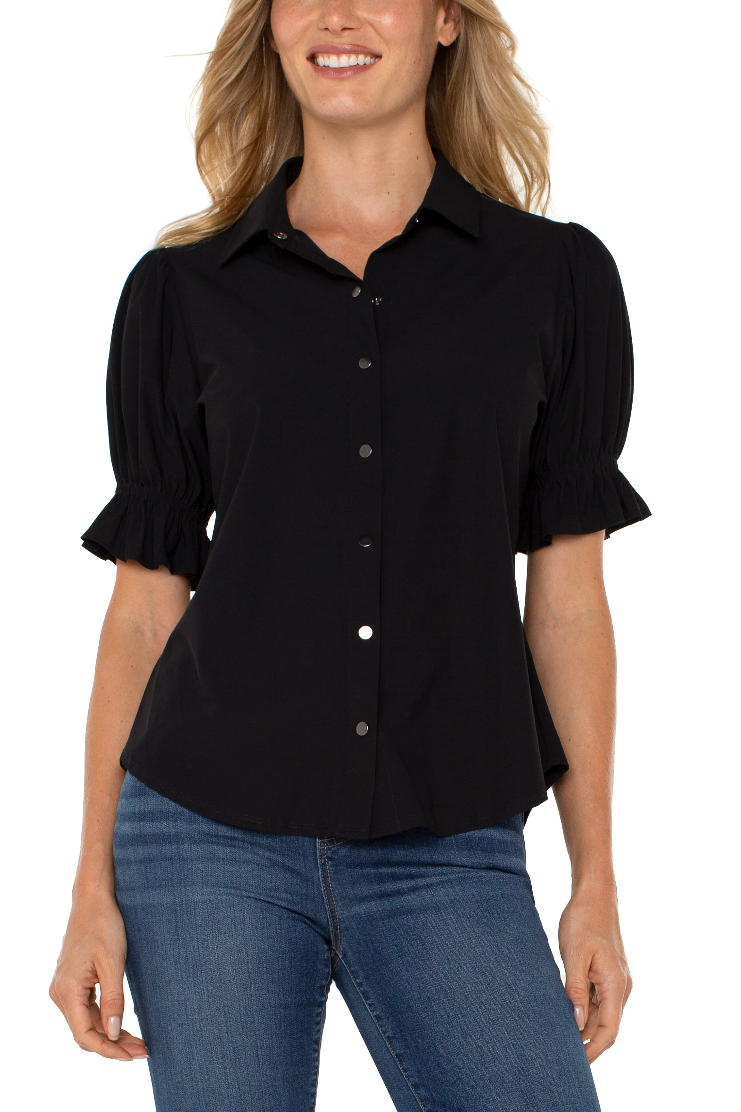 Elevate your wardrobe with this statement making top designed to stand out. Softly puffed sleeves add a refined touch, making it an easy choice for polished work looks or chic evenings out. For a more relaxed approach, pair it with your favorite jeans to achieve an elevated yet effortless style.