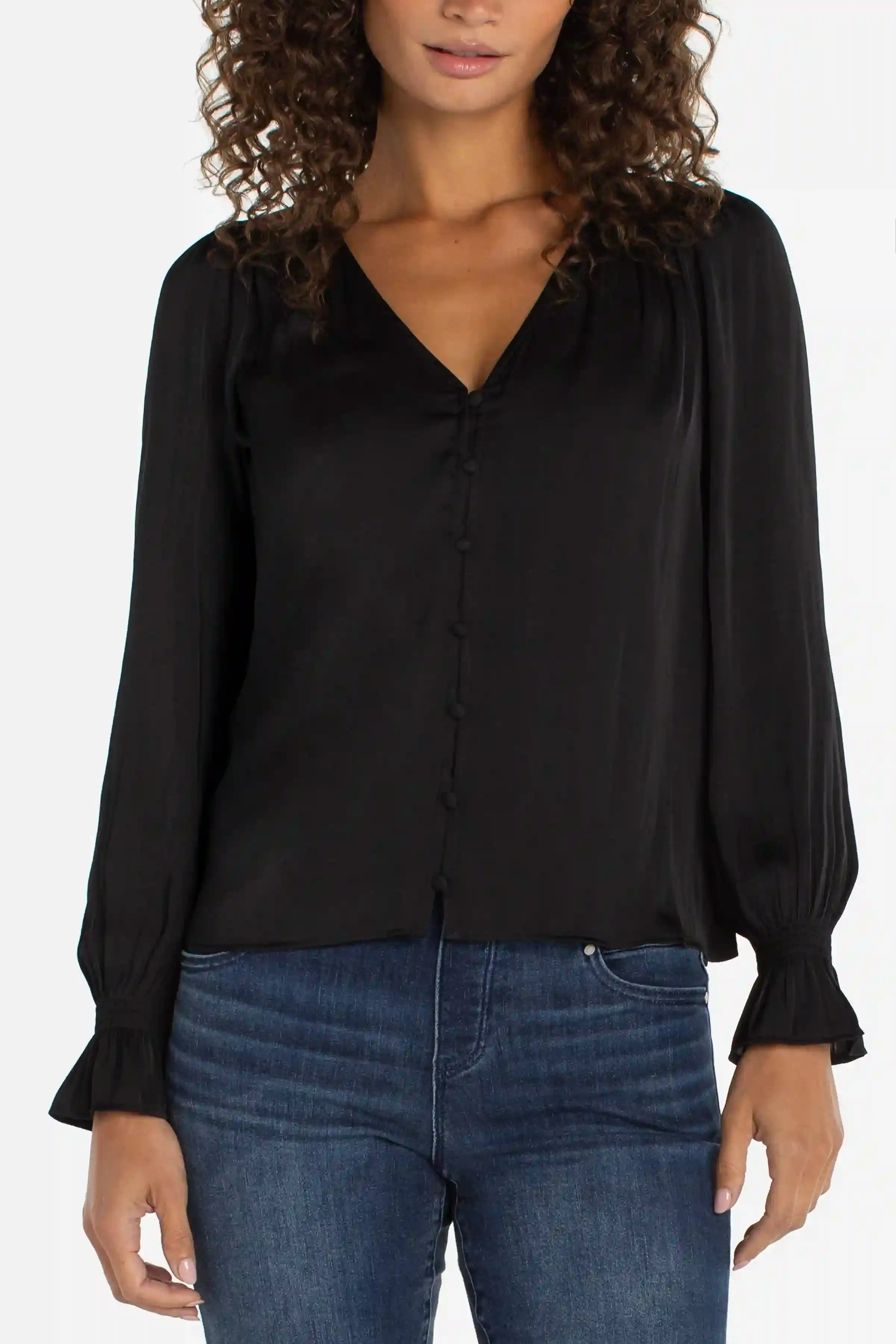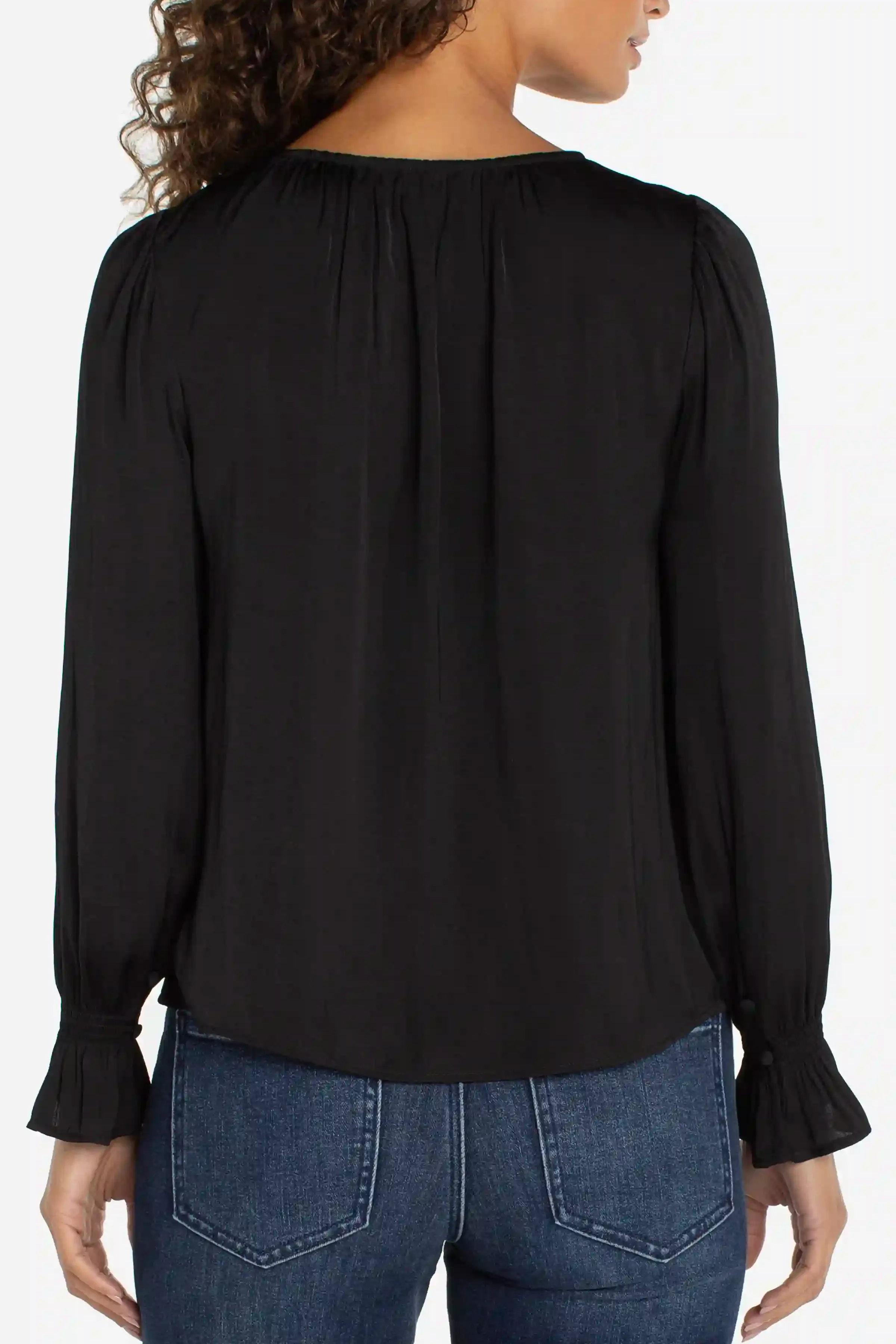 A feminine, effortless essential that enhances everyday style. Delicate smocking at the cuffs adds subtle texture, while the relaxed fit and button-front design make it simple to wear from morning to evening. Refined, versatile, and effortlessly chic.