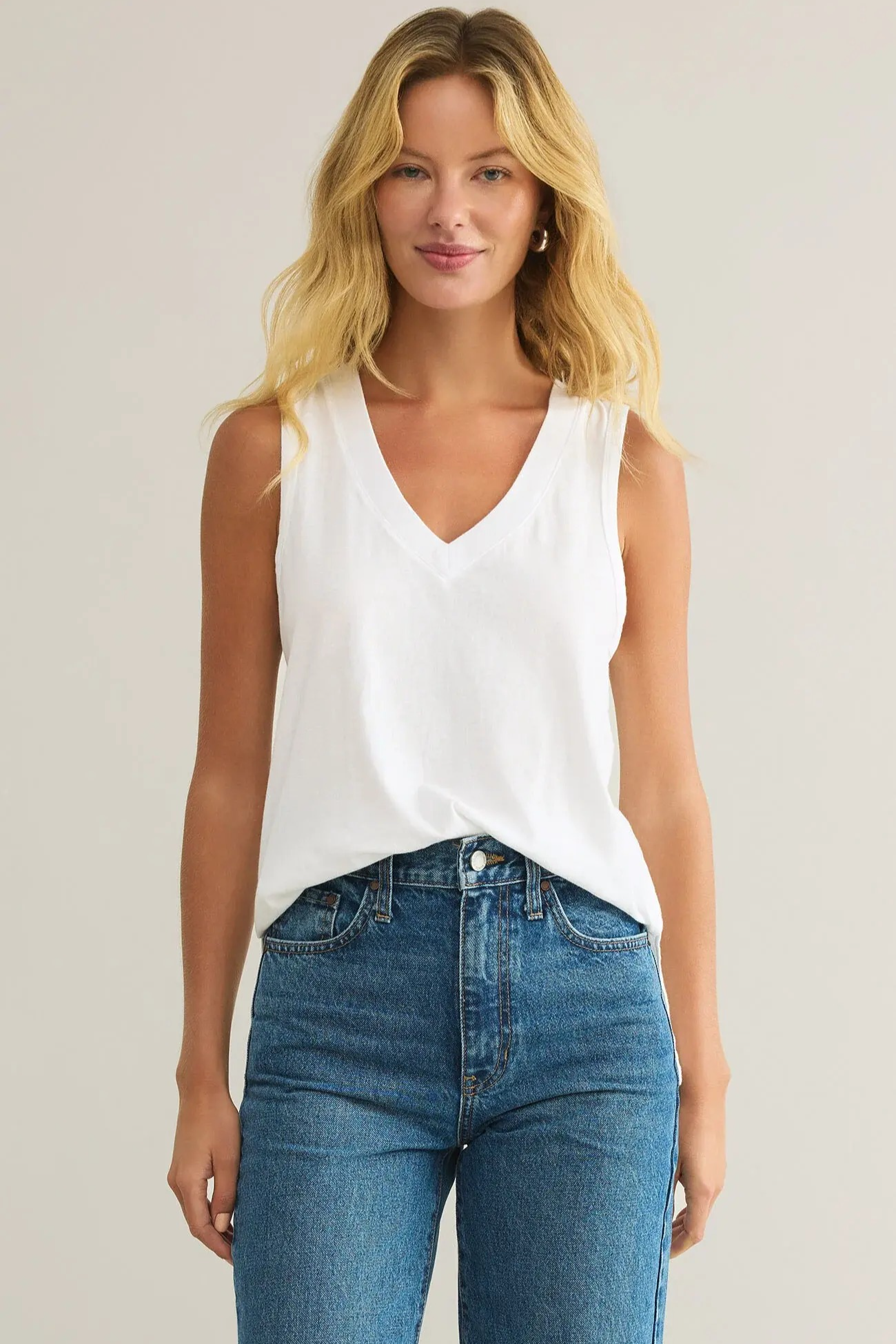A breezy V-neck tank with a relaxed, boxy fit made for everyday wear. The Z Supply The Californian Tank is cut from lightweight knit with a deep V neckline and wide shoulder straps for easy layering. Pair it with denim or high-waist trousers for an effortless, casual look.