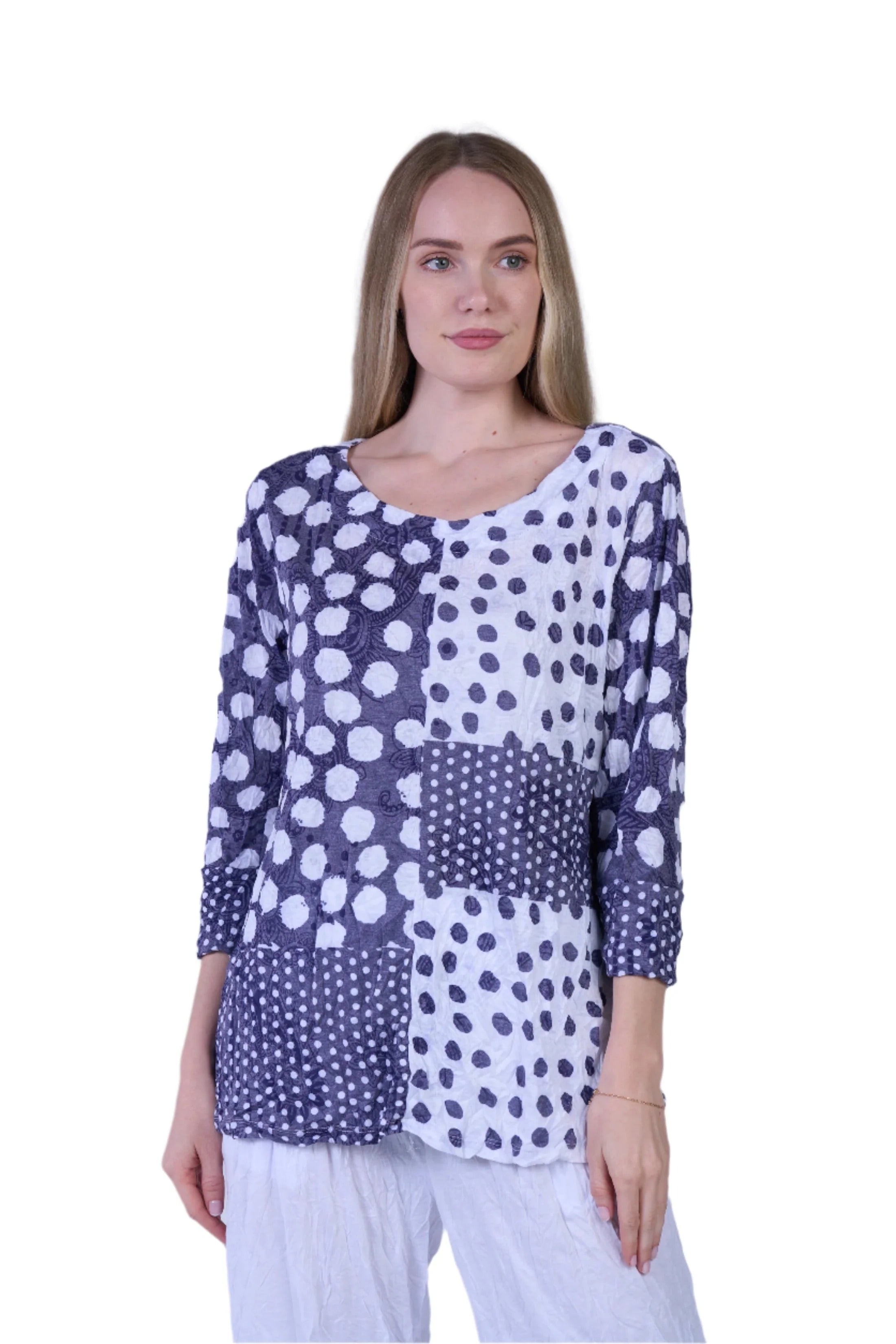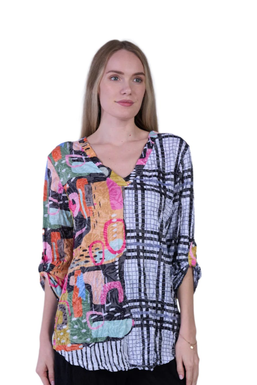 Shana Crinkle Mix Media Top