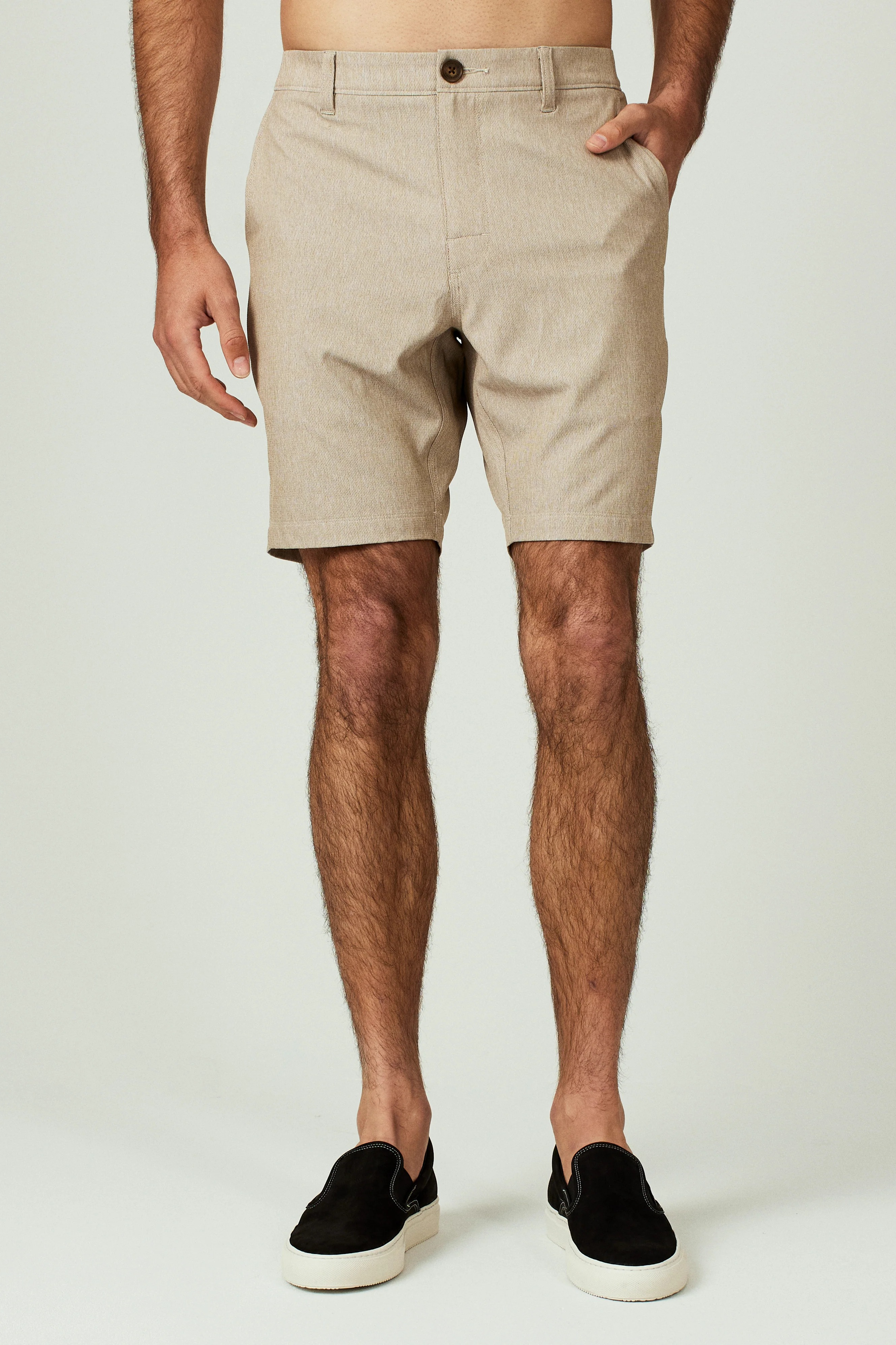 The 7Diamonds Everst Short 8" is a tailored, above-the-knee short with a clean front and subtle belt loops for a polished casual look. Constructed from a lightweight woven fabric, it has a structured silhouette that works for weekend outings or warm-weather travel. This piece is made by 7Diamonds and balances refined styling with everyday comfort.