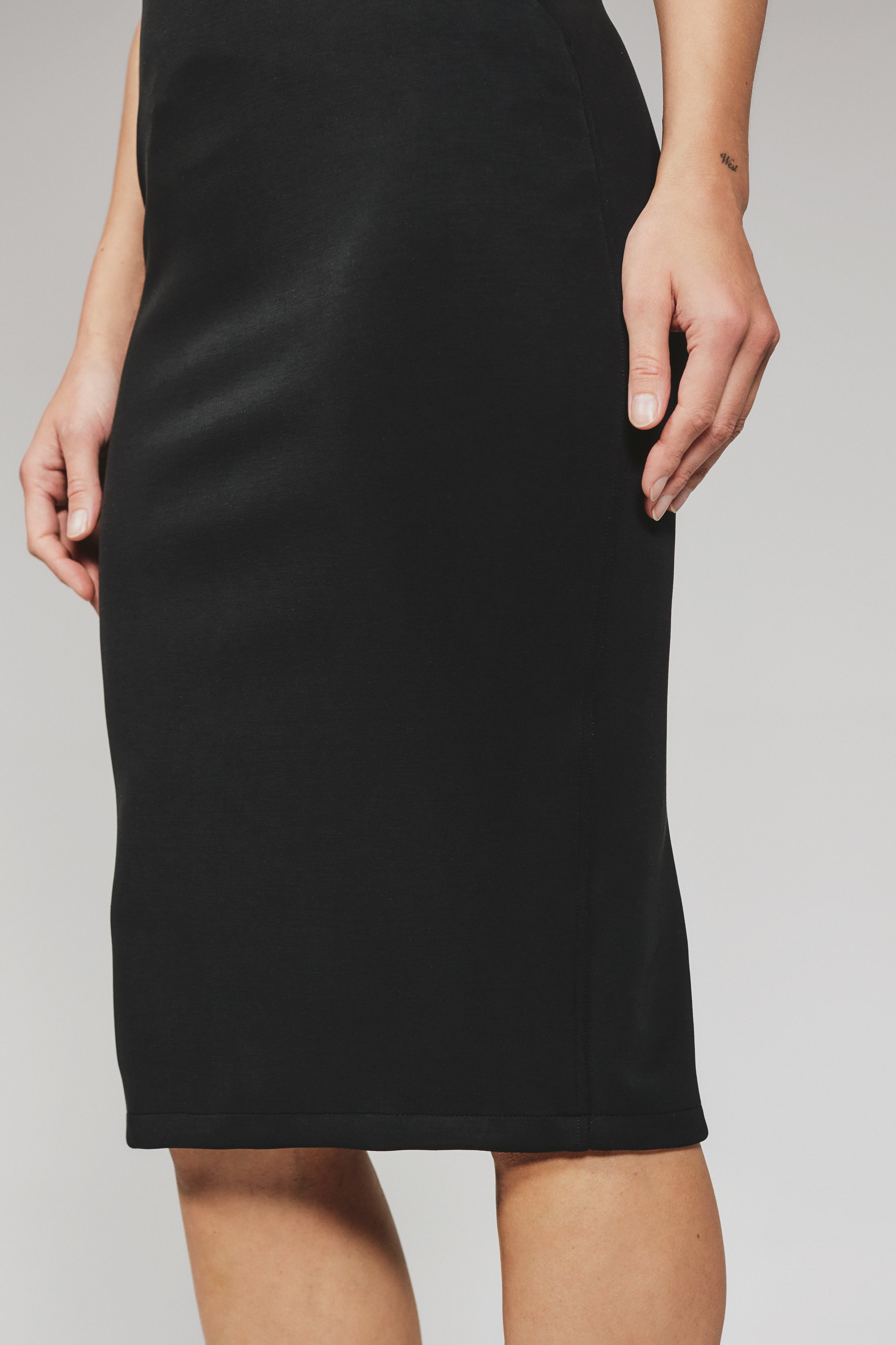 This chic midi pencil skirt is designed for a flattering fit, contouring your silhouette in all the right ways. It features a center back slit for ease of movement, a smooth hidden elastic waistband for comfort, and stylish front slash pockets. Pair it with the REV Tank and heels for an effortlessly sophisticated ensemble.