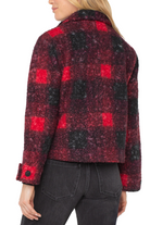 Our boxy-fit shacket in bold red-and-black buffalo check sherpa blends cozy warmth with laid-back style. The plush textured fabric brings dimension, while button-tab cuffs and a cropped cut add a polished, modern edge.