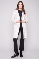 Add timeless elegance to your fall style with our Long Plaid Knit Coatigan in white. Crafted with a soft ivory plaid pattern, it offers the perfect balance of comfort and sophistication. The tailored lapel collar and button-front design create a polished silhouette that’s ideal for layering on crisp autumn days or cozy evenings. Versatile and chic, this coatigan is sure to become your go-to piece all season long.