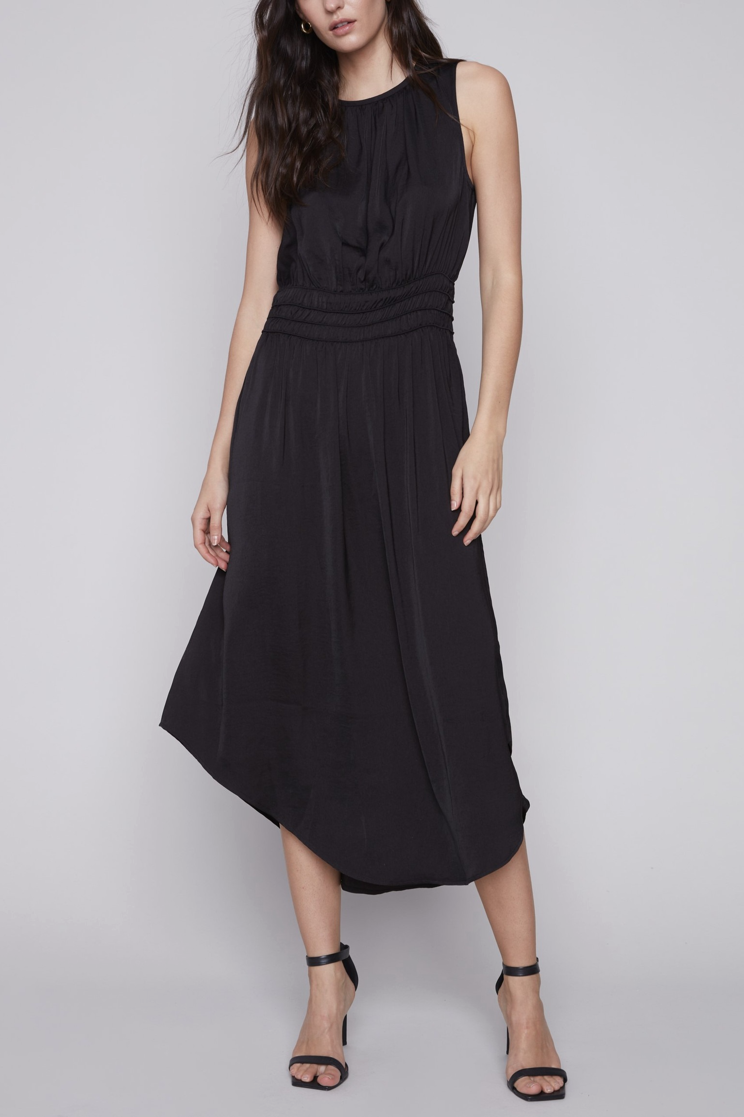 This elegant ladies' dress is designed for both comfort and style, featuring a flattering elastic cinched waist that enhances your silhouette. The rounded hem adds a graceful touch, making it a versatile piece for various occasions. Crafted from 100% polyester, it offers a lightweight feel and effortless drape.