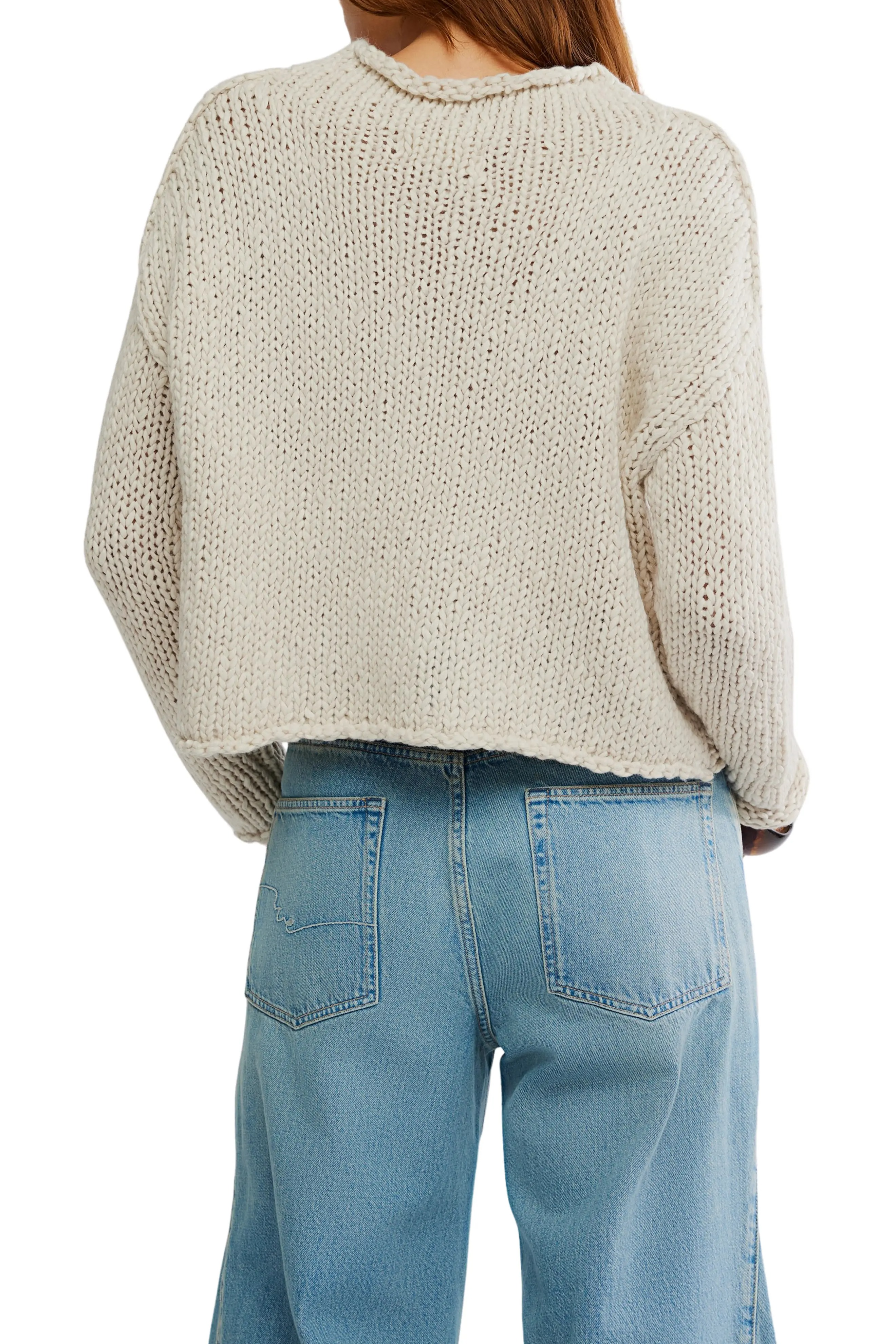 With dropped shoulders and a boxy cropped silhouette, this cozy sweater features textured stitching that gives it a charming, handmade-inspired feel.