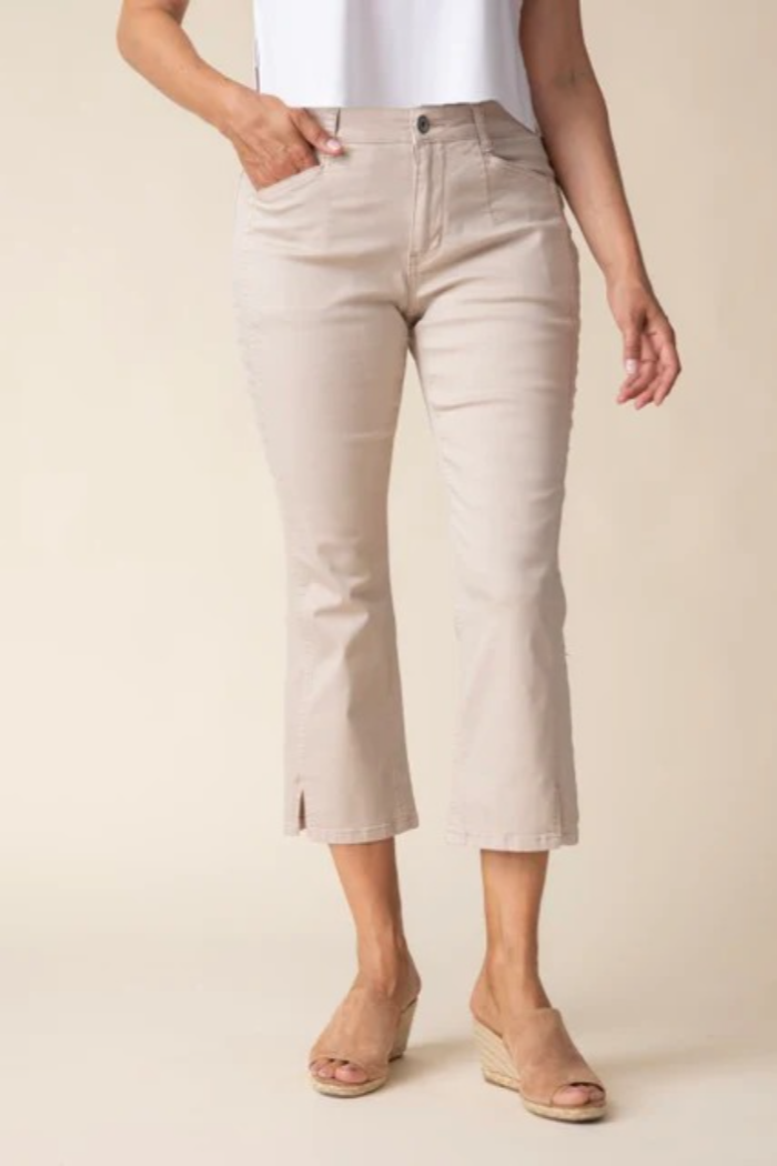 Designed for both style and comfort, these pants feature forward side seams that accentuate subtle slits at the hem for a chic touch. The sleek, no-bulk pockets maintain a streamlined look, while the innovative 4-way stretch fabric ensures flexibility and ease of movement. With a flattering kick flare leg and a comfortable fit, these pants are a versatile addition to any wardrobe.