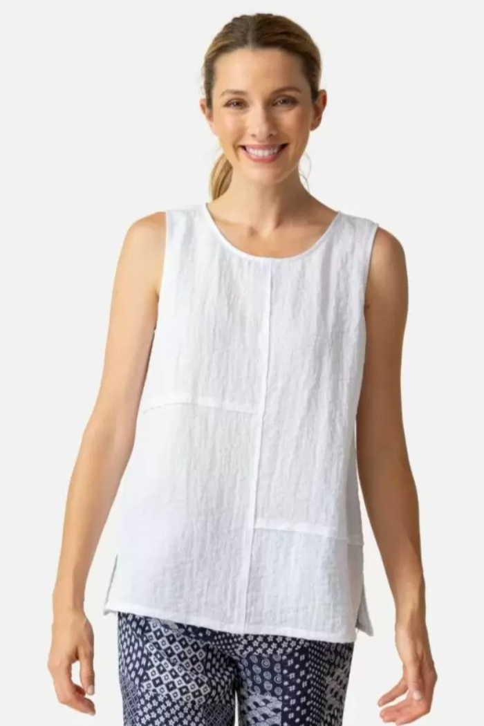 Ideal for a beach vacation or a sunny day, this rayon-blend tank is both stylish and effortless to maintain. Designed with a scoop neckline and relaxed arm cutouts, it offers a breezy, comfortable fit. The intersecting seams at the front and back create a unique pieced effect, adding subtle detail to the design. Pair it with Habitat’s crop pants for an effortlessly chic summer ensemble.