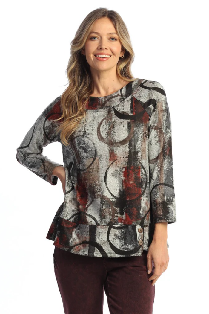 The Edition Novelty Brush Top brings artful charm to everyday style. Designed in a lightweight knit with an overlap hem and decorative buttons, it features a unique brushstroke print that makes each piece one of a kind. Comfortable, creative, and effortlessly flattering for any occasion.