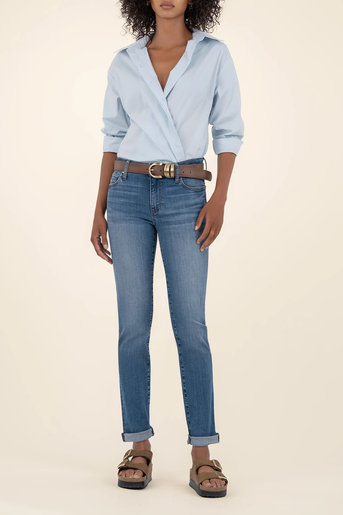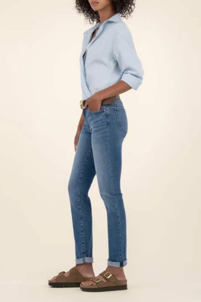 Casual yet polished, our mid-rise boyfriend jeans in a timeless medium wash are the perfect choice for easy, everyday style.