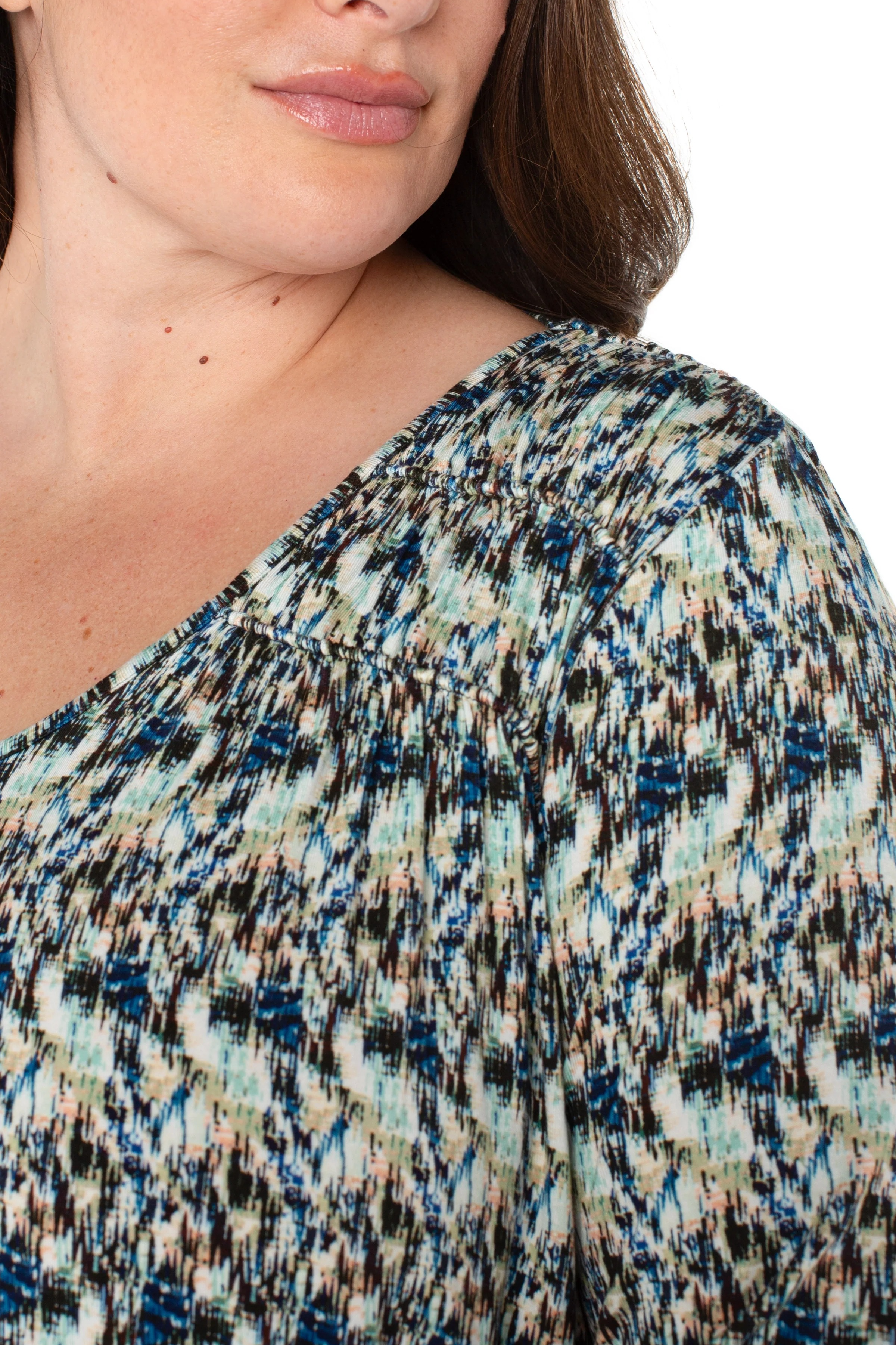 This long-sleeve knit top offers a perfect blend of comfort and breathability, featuring a graceful drape. The subtle shirred detailing and soft, relaxed knit ensure effortless movement, making it a versatile choice for transitioning from day to night.