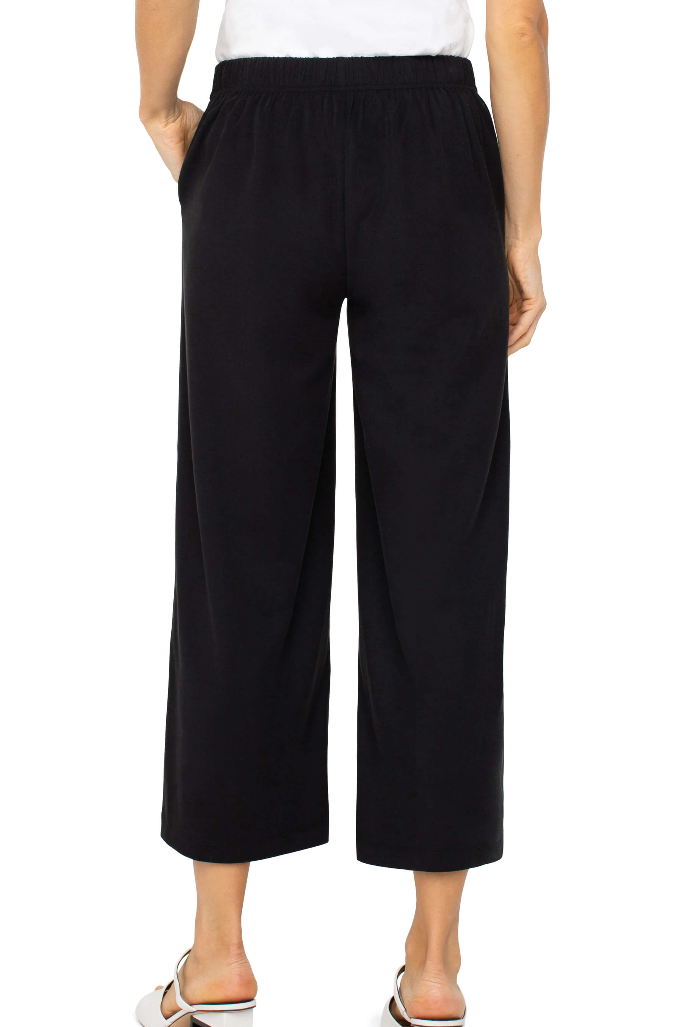Designed for effortless comfort and style, our wide-leg crop trousers offer a pull-on design for easy wear. Versatile and sophisticated, they can be dressed down with a casual top, layered with a denim jacket, and finished with sneakers. For a polished, coordinated ensemble, pair them with the matching top and enjoy endless styling options.