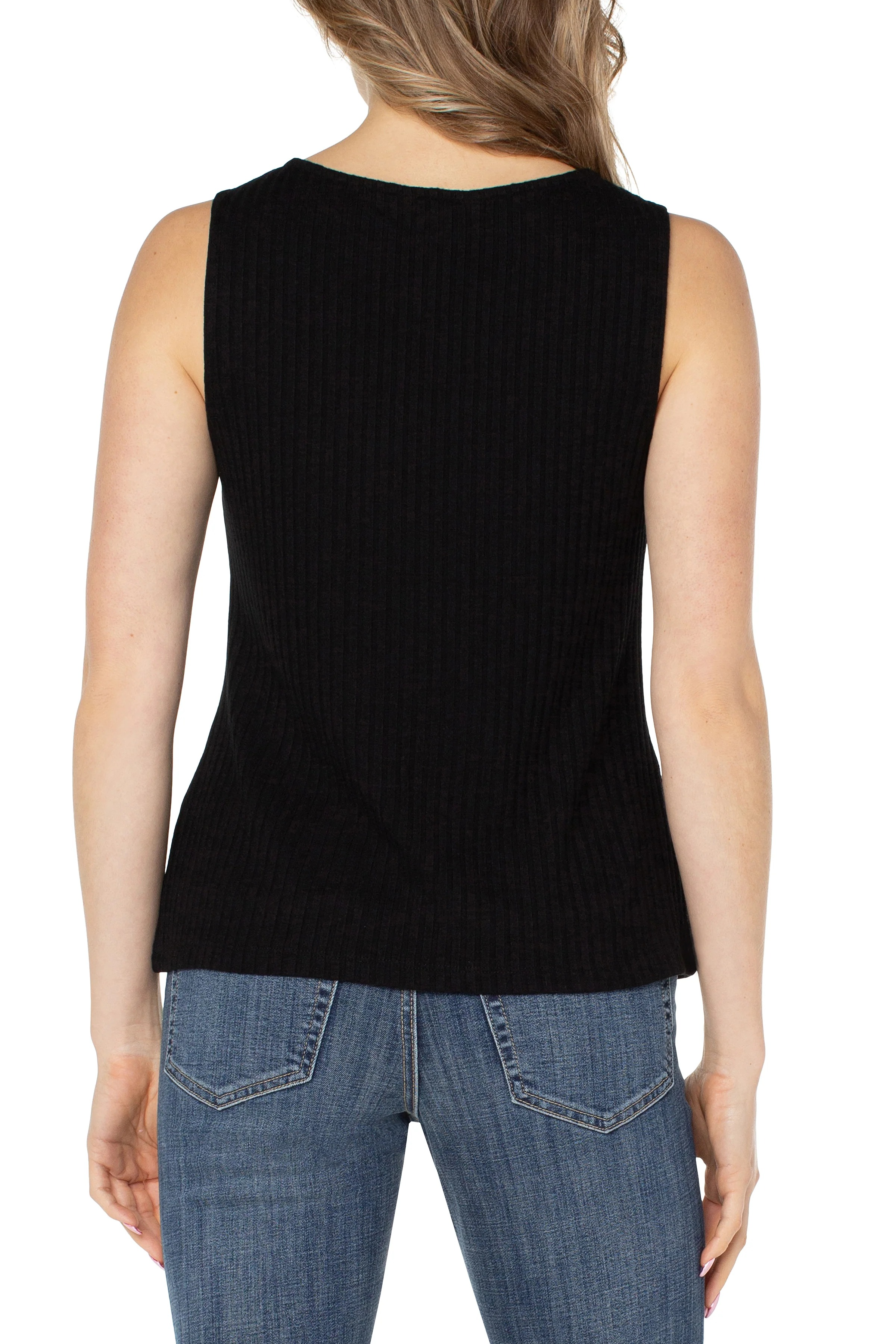 A refined essential crafted for limitless versatility. This sleeveless rib-knit top boasts a flattering boat neckline and a soft, stretch-blended fabric that hugs the body smoothly. Wear it on its own for a sleek, minimalist look or layer it under jackets and cardigans. Offered in a variety of colors to complement any style and season.