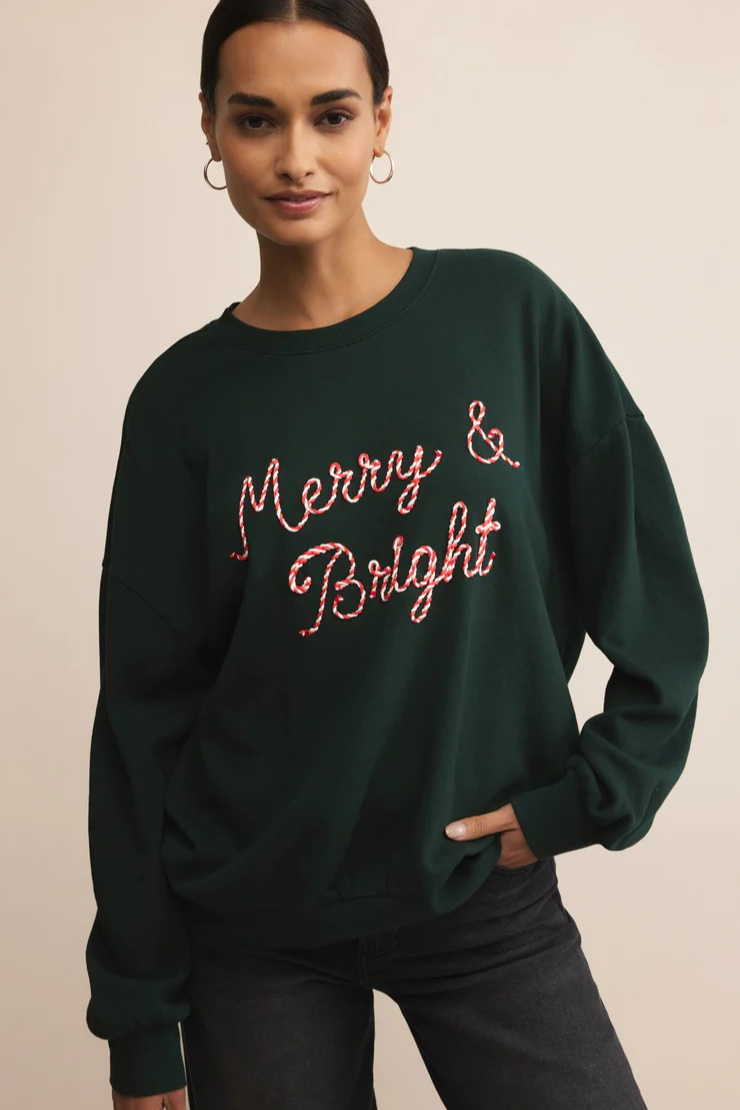 Crafted from brushed cotton fleece, this oversized sweatshirt combines comfort with a refined feel. The raised cord “Bright” applique adds a playful textured detail, making it a standout choice for the season.