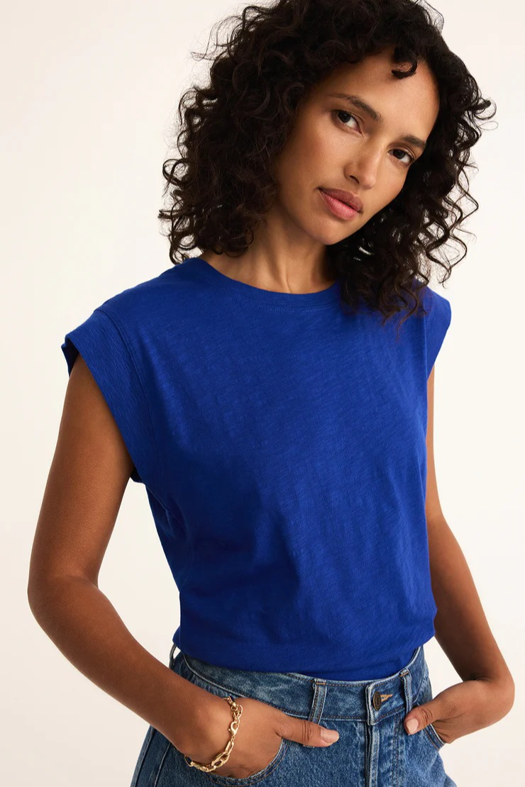 Lightweight, easygoing, and effortlessly worn-in, this cotton slub tee is destined to become your new favorite. Ribbed cap sleeves add a hint of texture, giving it that perfect touch of laid-back style.
