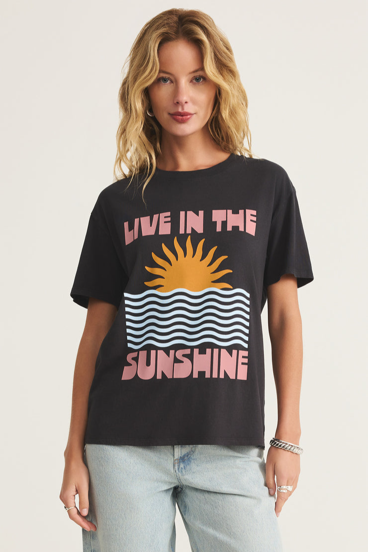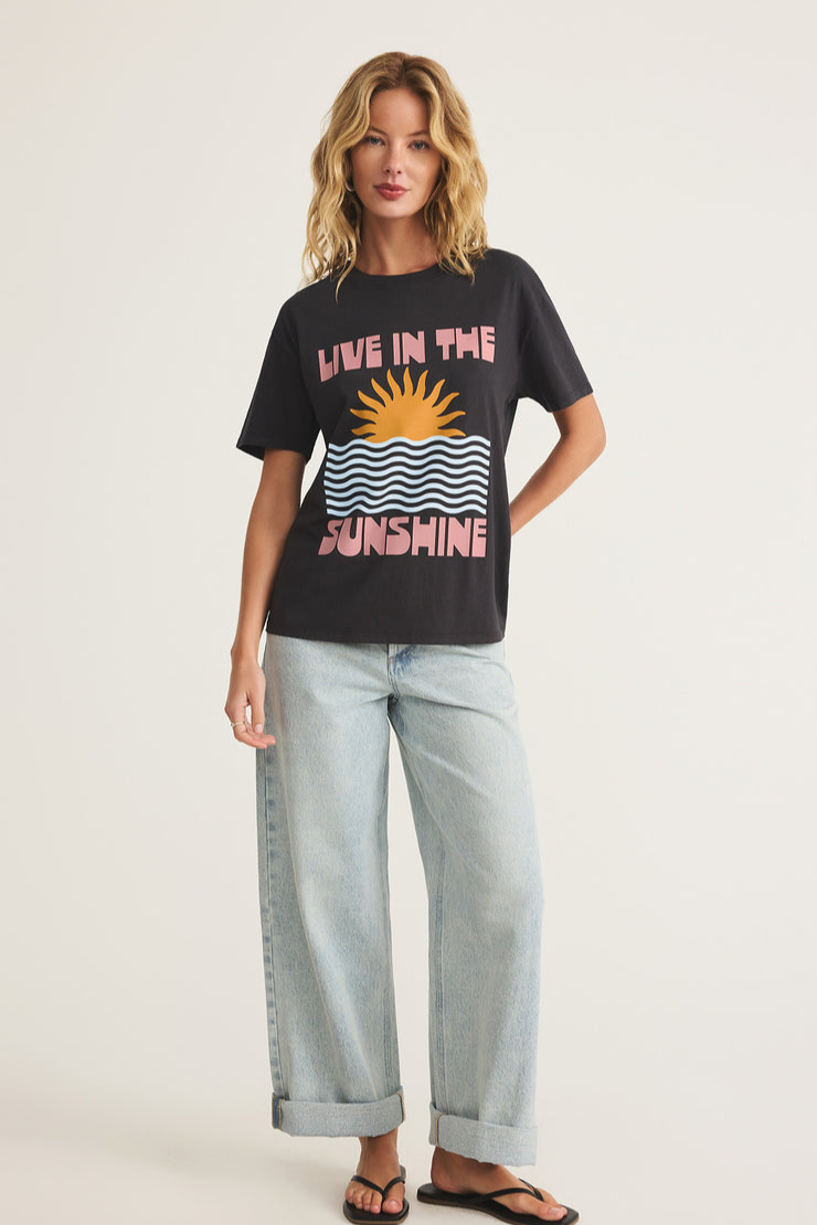 Embrace a sun-soaked lifestyle with this easygoing tee, designed with a laid-back "Live in the Sunshine" beach-inspired graphic. Crafted from 100% cotton jersey, its lightweight feel and relaxed fit make it a go-to staple for effortless style any time of the year.